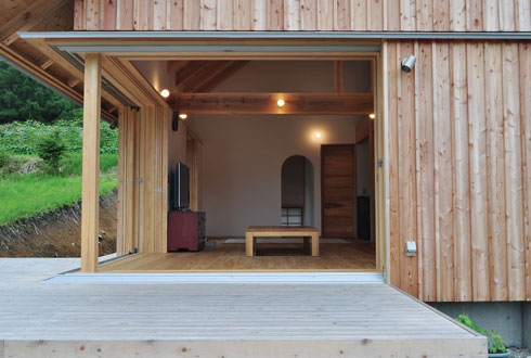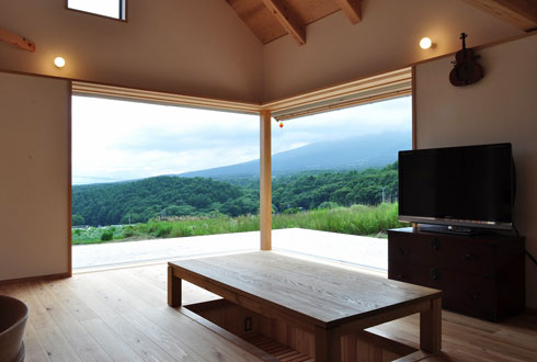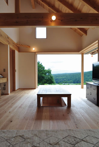 八ヶ岳の雄大な裾野を望みながら家の中から外へと広がる空間を楽しめる、