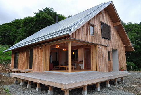 | 外部仕上 | 屋根/ガルバリウム鋼板一文字葺き、軒裏/唐松化粧野地板張り、外壁/唐松板張り、サッシ/アルミサッシ+ペアガラス一部木製サッシ、デッキ/ヒノキ(木曽産) |
