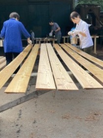 使う木材の育った山を見学に行き、大黒柱の伐倒をみたり、