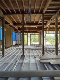 床の場合も同じく、吹抜けに床を貼るといったワクワクな工事。子供たちにとって今まで無かったものが現れる!床ができる!新鮮でワクワクする出来事のようですよ。(笑)