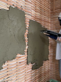 今日は、伐採の終わった現場で、のじーと一緒に、建物が建つ位置に縄を張りました。