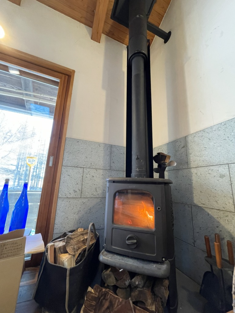 私が勤務する長野県原村にある八ケ岳営業所には、各小屋に薪ストーブが入っています!