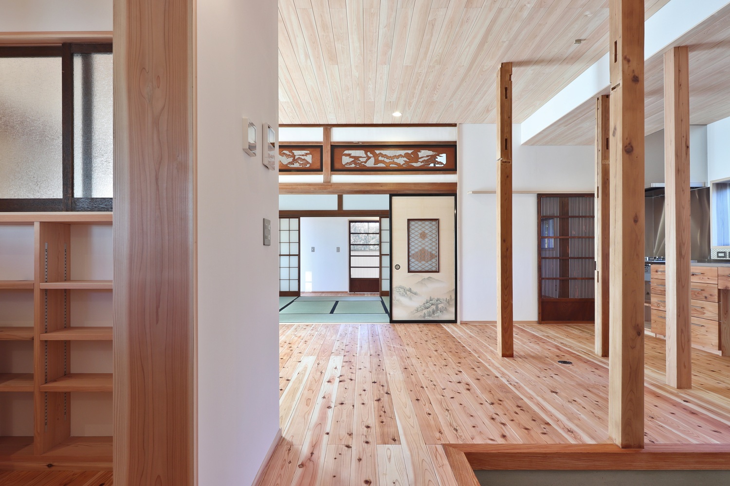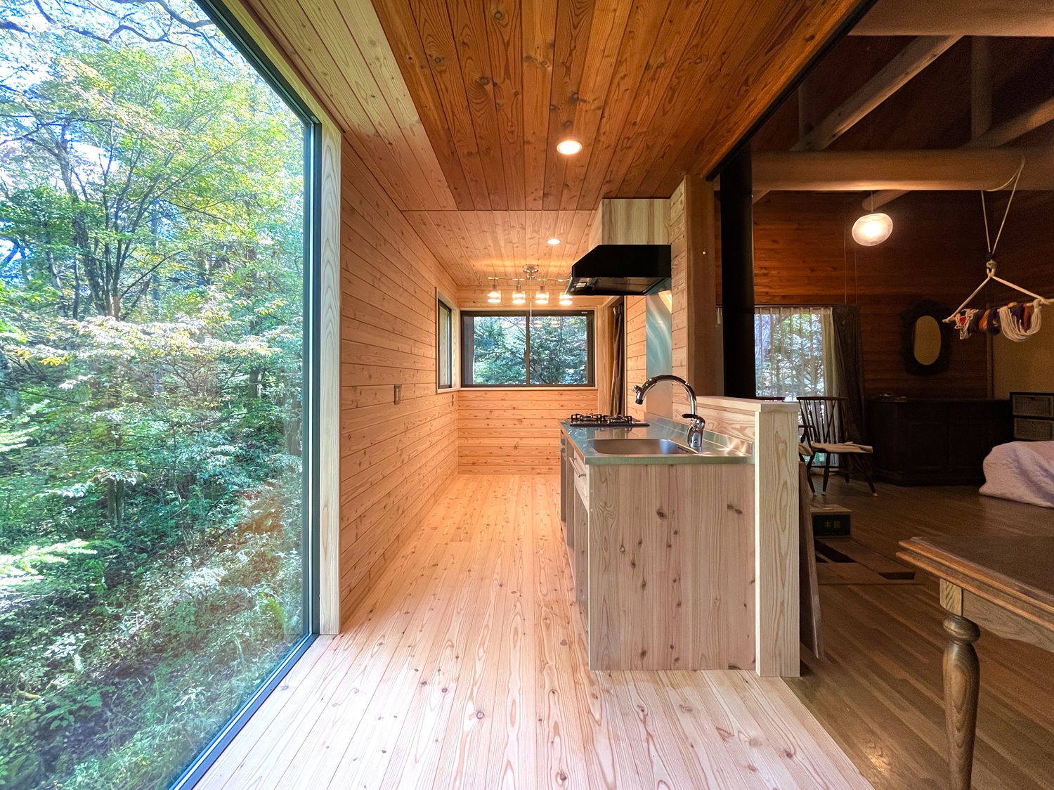 遠い昔、鉄道の要衝として栄えた山北町で、築年数100年以上の古民家が全面リノベーションされました。さすが全面改修です!もはや新築と変わらない見栄えに進化していました。かつて玄関があったはずの場所は、「新・循環の家」にも見られる4連の大型木製サッシが配置された、日当たりと風通し抜群のリビングに進化していました。