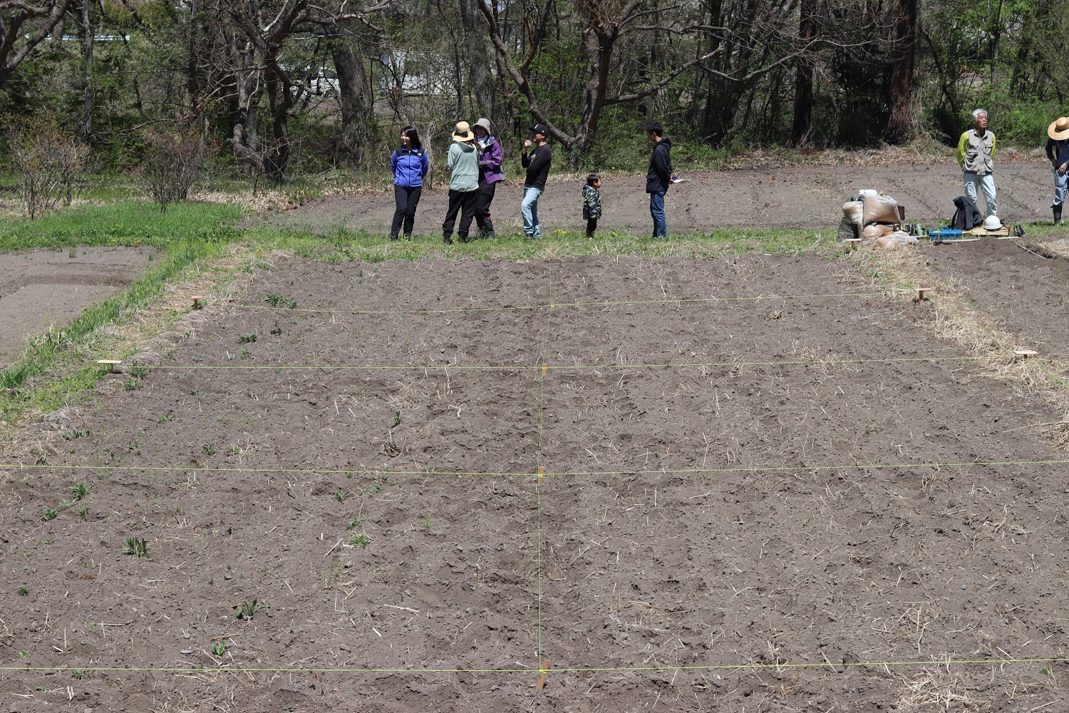 そんなキャッチコピーを掲げて、長野県東信エリアのお施主さまに呼びかけを行ったところ、3組のオーナーさまが『コミュニティ農園』の参加に手を挙げてくださいました。この農園には「1区画=5m×4m」の敷地が8区画分セットされており、4月下旬には現地説明会も行わせていただきました。「ジャンケンポン!」「ワタシはココ!アナタはココね!」と、各オーナーさまの区画もスイスイ決まっていきました。