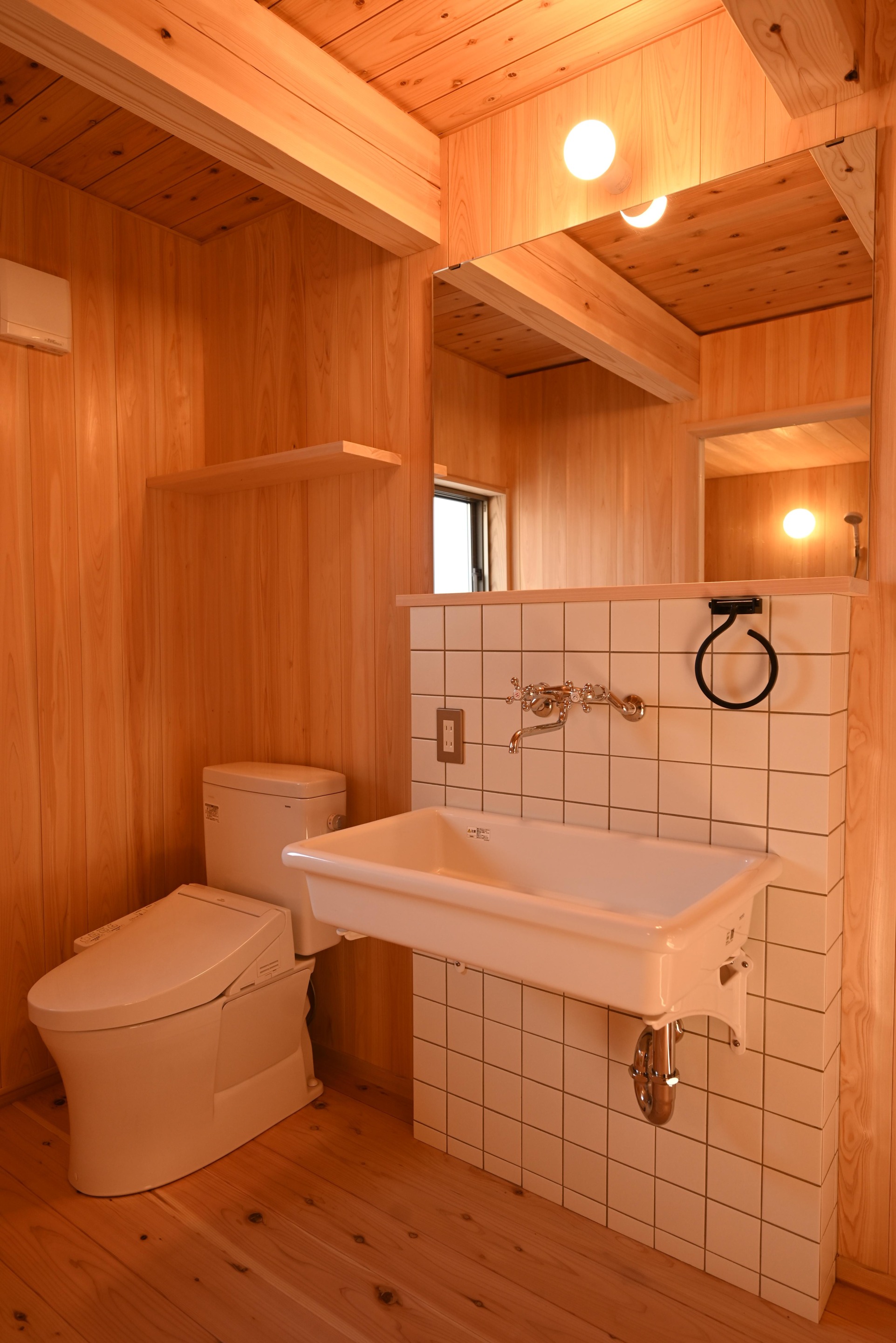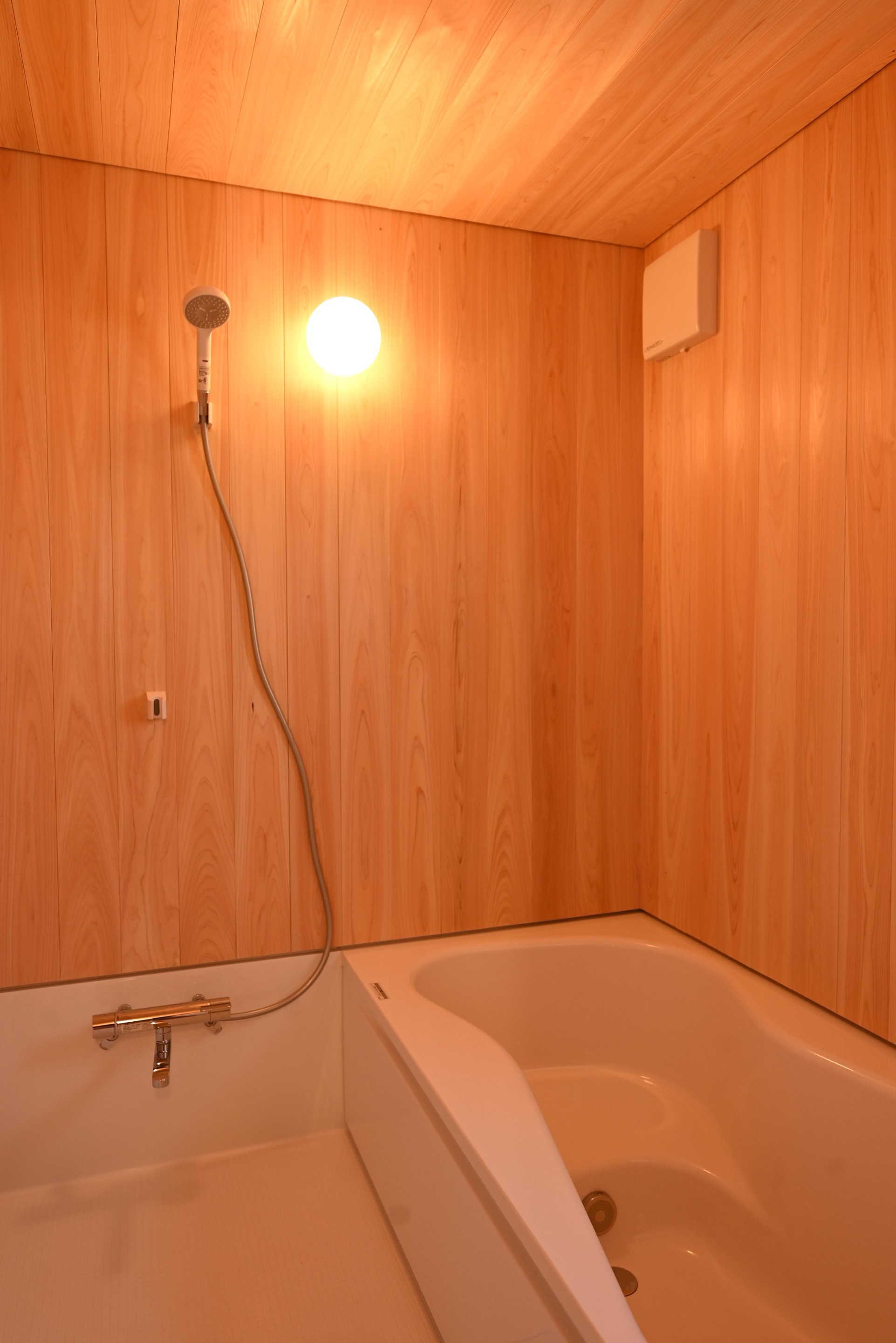 その隣にはヒノキ張りのお風呂があり、木の香りに包まれてリラックスバスタイム…