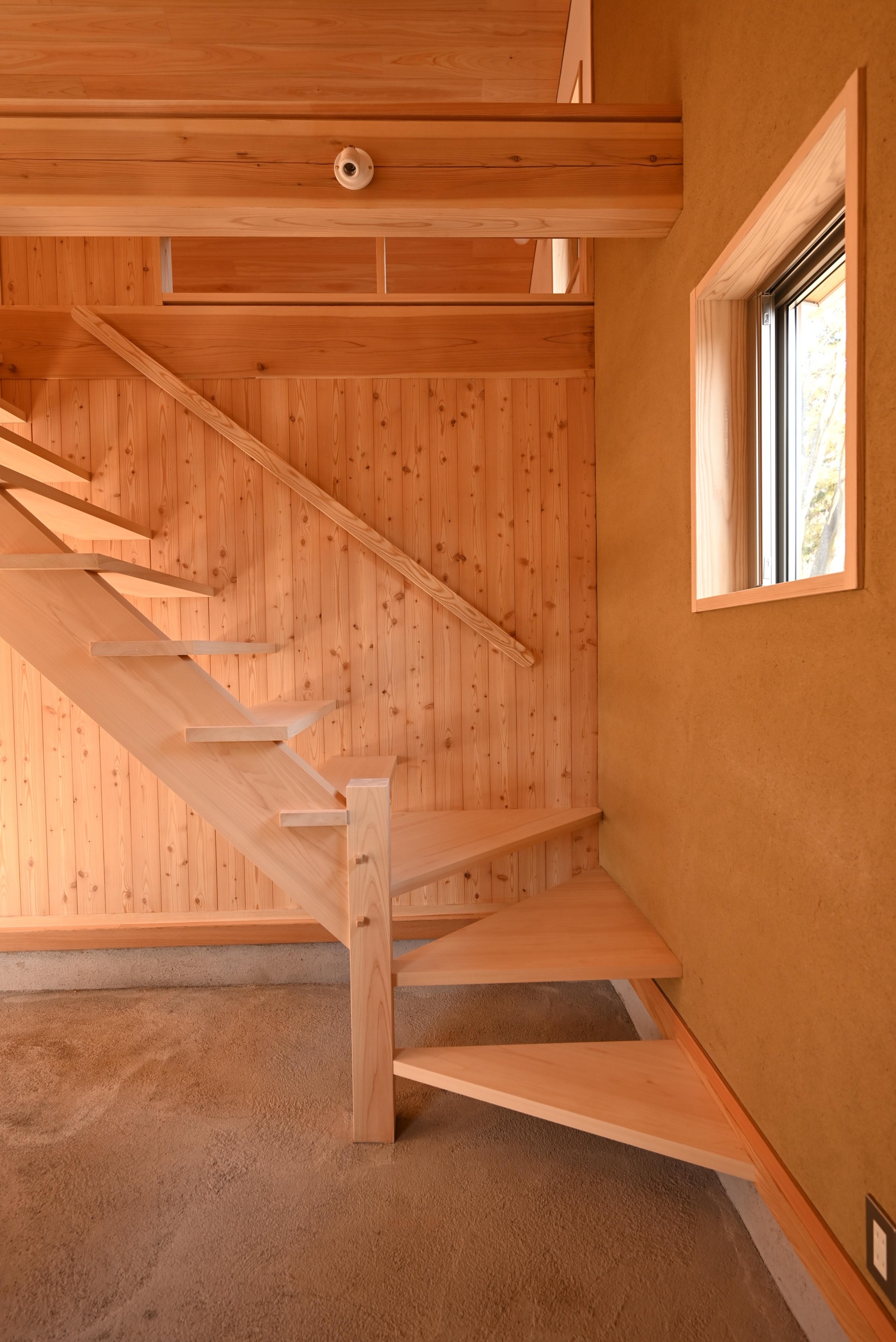 ご夫婦おふたりで住むコンパクトなお家なので、ストリップ階段(階段同士をつなぎ合わせる「蹴込み板」がない階段)にし、