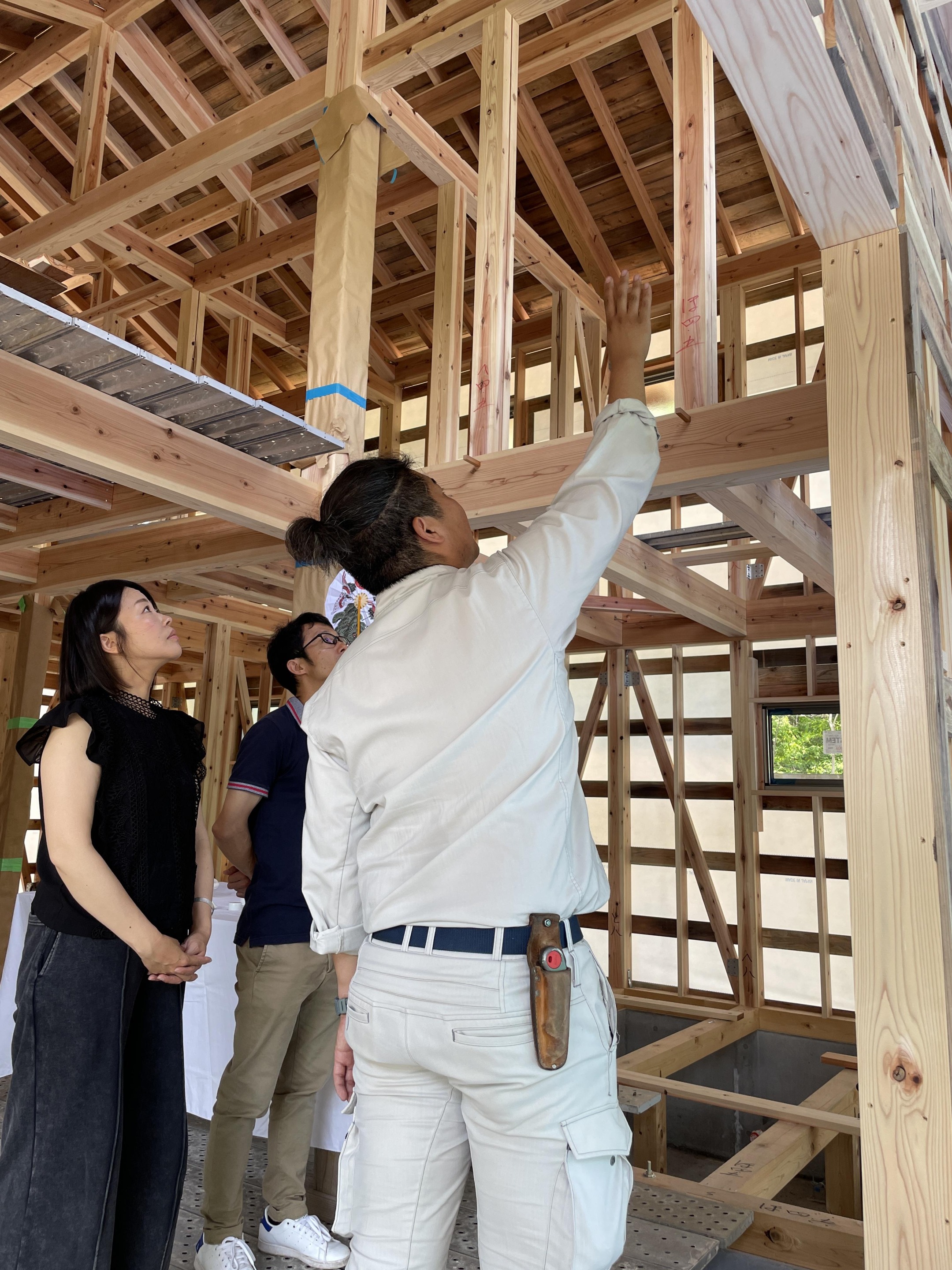 木と木を組み合わせる大工さんの継ぎ手を見ながら「どうしたらこんな風にできるんだろう・・・」と、とても興味深く家づくりの過程を楽しんでくださっていて、私も側にいて楽しくなりました。