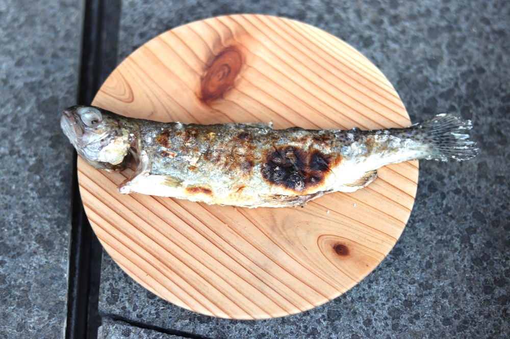 七輪ってスゴイですね。こんなに小さい炉でも、しっかり空気を通して、燃焼して、お野菜はもちろんのこと、お魚やお肉までシッカリ焼けるんですよね。ニジマスの白身もホクホクの塩味で、日本酒にメチャメチャ合っていました。小さな七輪を囲んで、6人で談笑しながら、お腹もイッパイになれるという贅沢時間。夜風に触れて少し肌寒いなと思っても、七輪の熱で温まれるという贅沢時間。ついでに言うと、七輪の煙は防虫効果も発揮してくれていたようです。七輪って、小さいのに何だか多機能ですね。