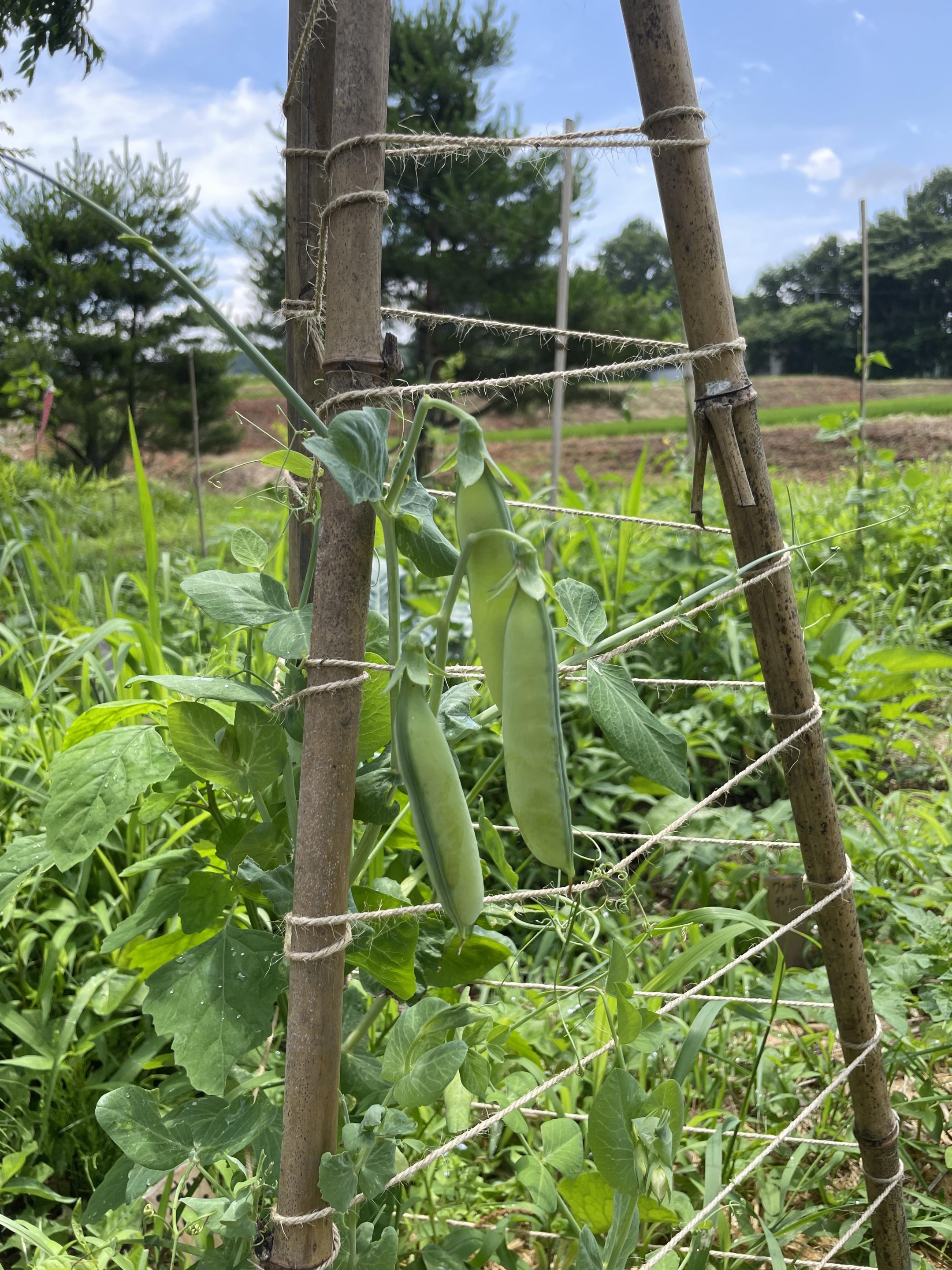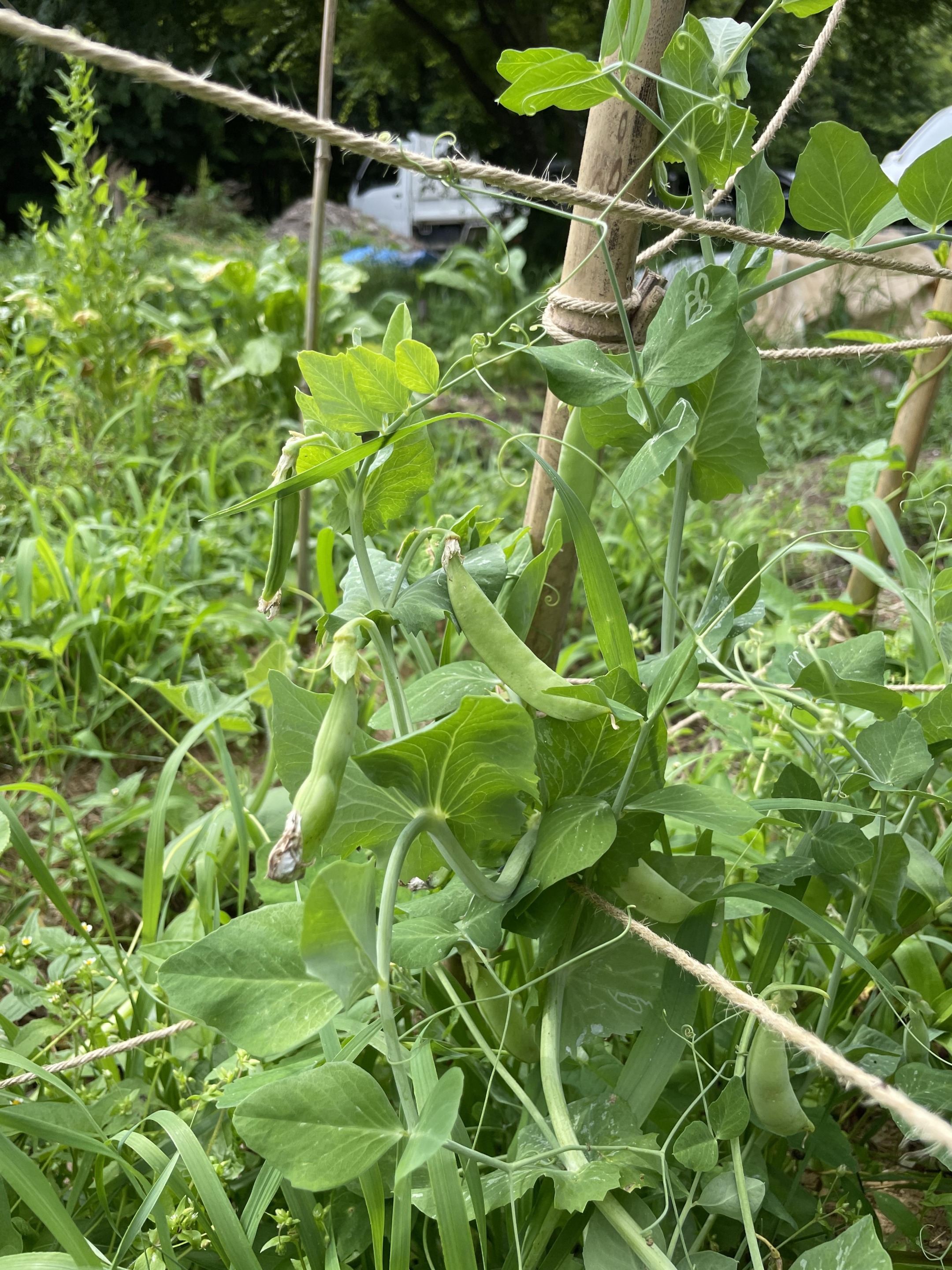 昨年に引き続き「まめごはんが食べたい」の一心で蒔いた<うすいえんどう>と、