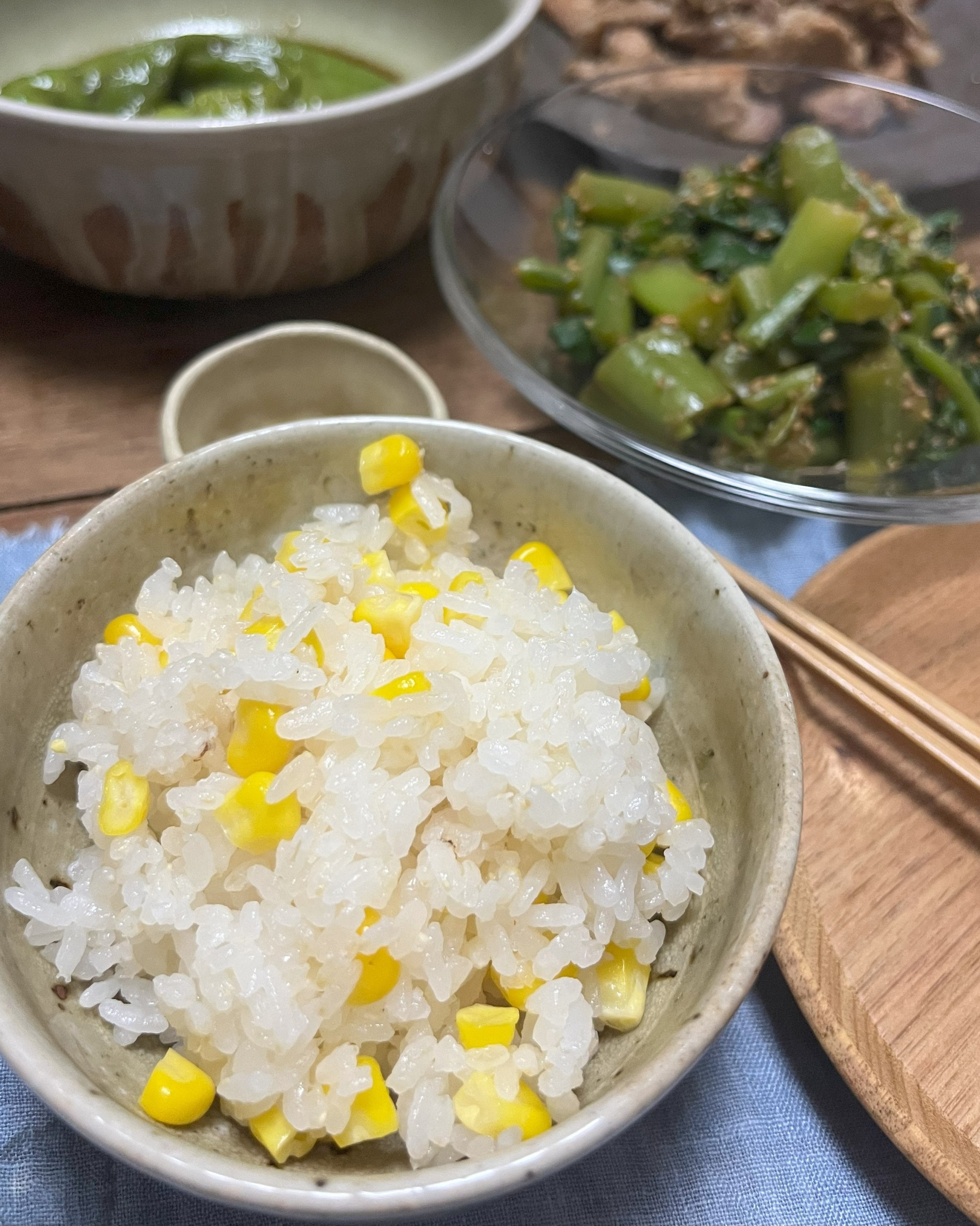 この前とうもろこしをいただいたときは、とうもろこしごはんもできました🥰