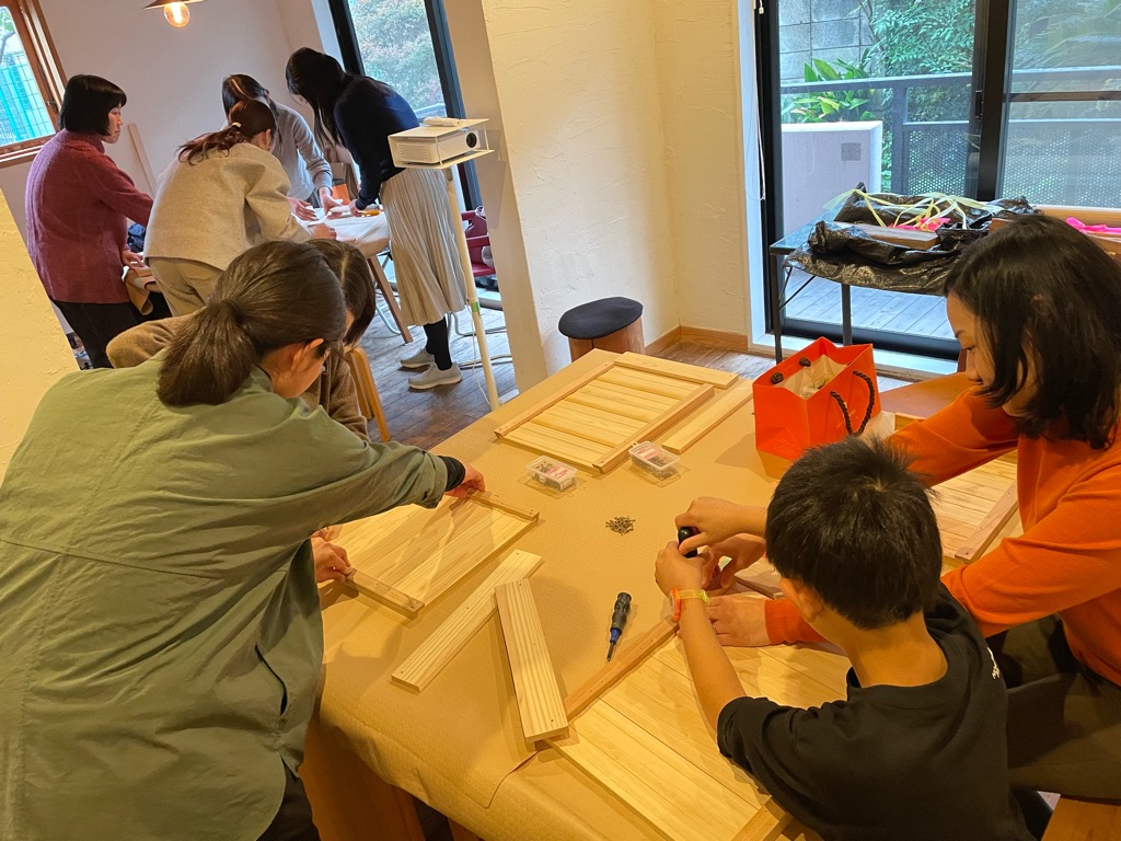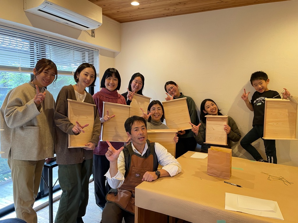 参加者の皆さんは、ヒノキのイイ香りの中で真剣に製作に取り組んでいました。 自然素材の心地よさや美しさ、何より自分自身で完成させたモノを使う喜びって大切ですよね。