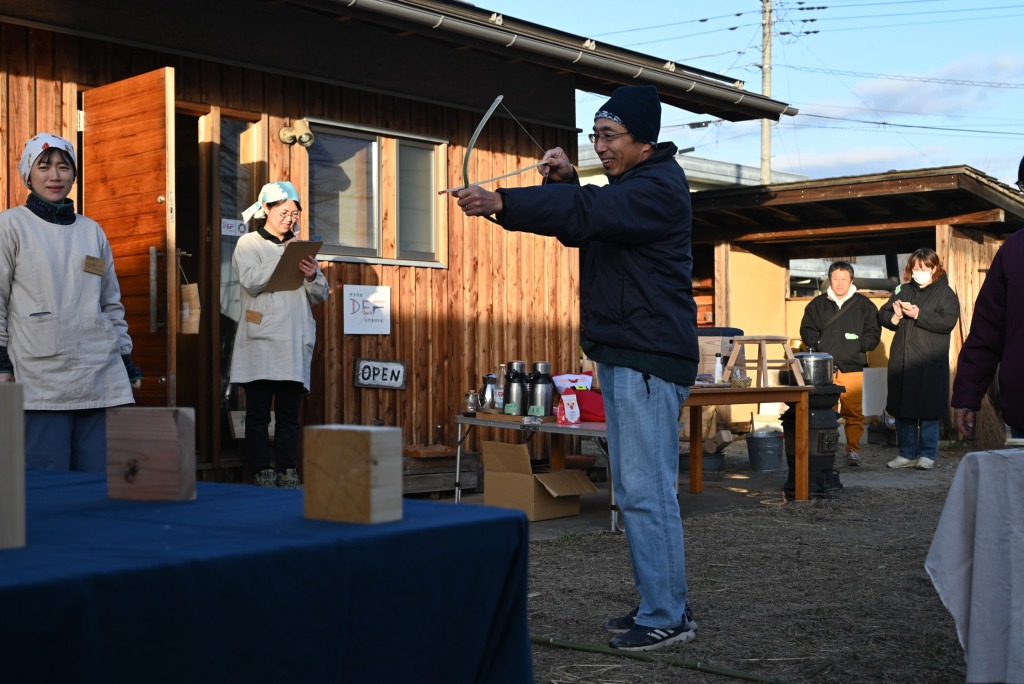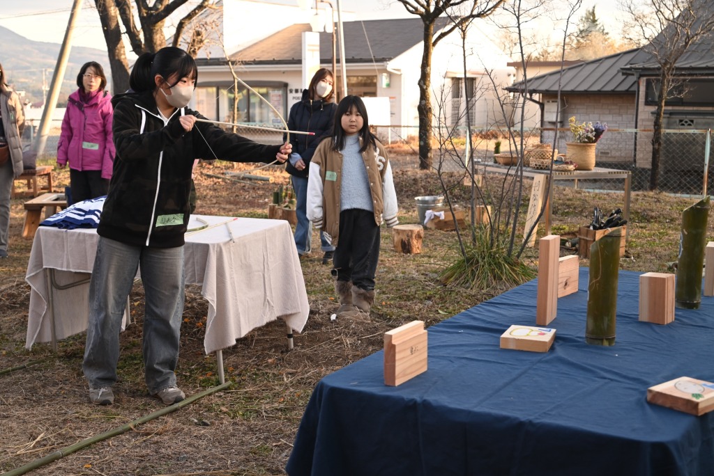 環境事業チーム「環と環」提供の弓矢で、的あてをして点数を競います。