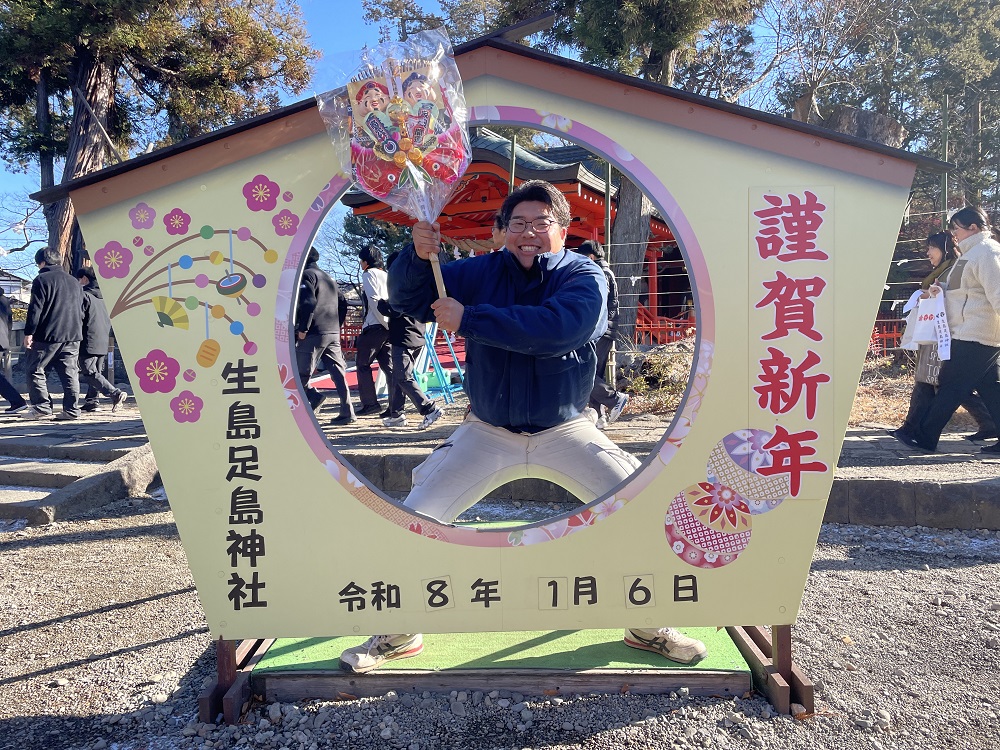 そんな暖かい暮らしを叶えてくれるデフのお家が、この冬も軽井沢・佐久エリアで増えています。年末年始はお家の骨格が目立つ光景が展開していますが、今後の進捗で表情が増していくことでしょう。皆さまの豊かで健やかな暮らしを願い、環境負荷の少ない自然素材の家づくりを、こうして各エリアで行えていることに日々感謝しております。今年もアトリエデフをどうぞよろしくお願いいたします。最後に、年末に何か良いことがあったらしい、池田監督の写真を添えて締めさせていただきます。