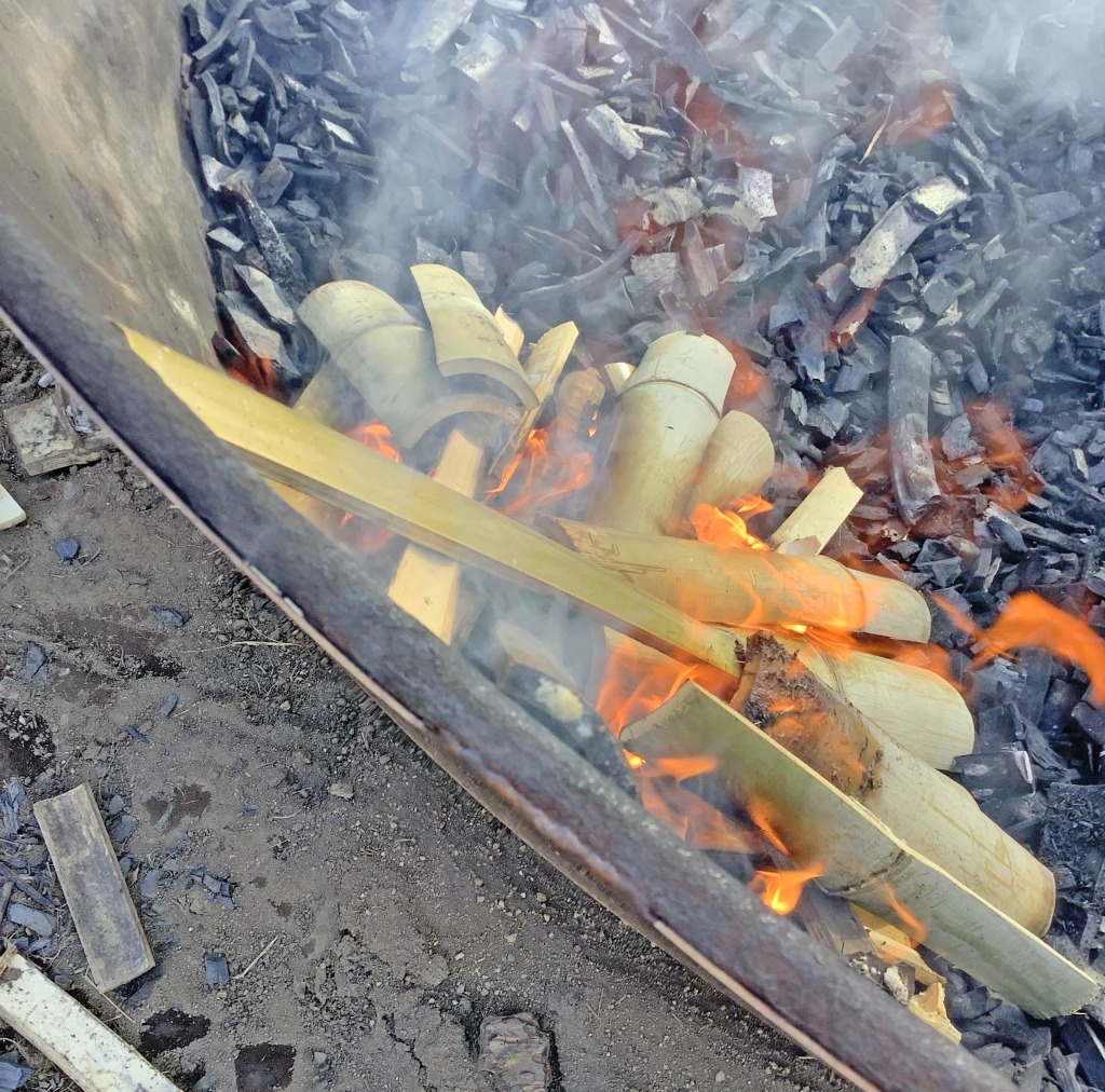 火の中の竹からはシューシューと水が蒸発する音がするのですがとても心地いい音でした。