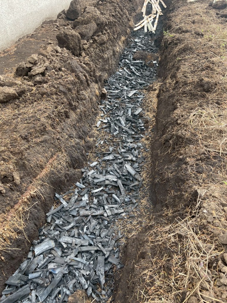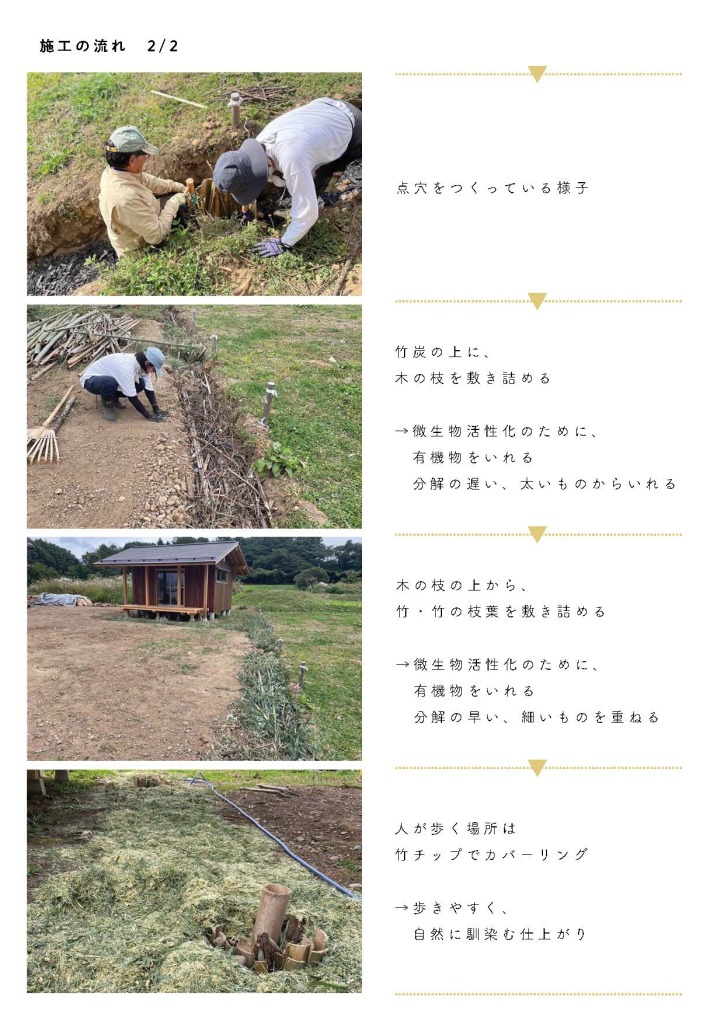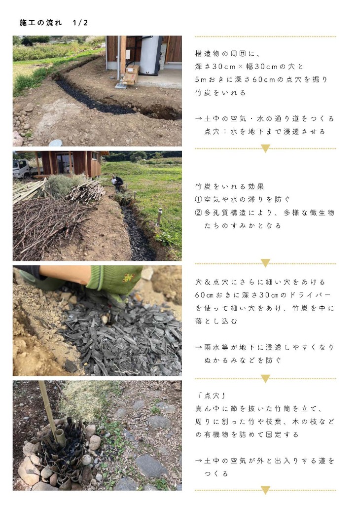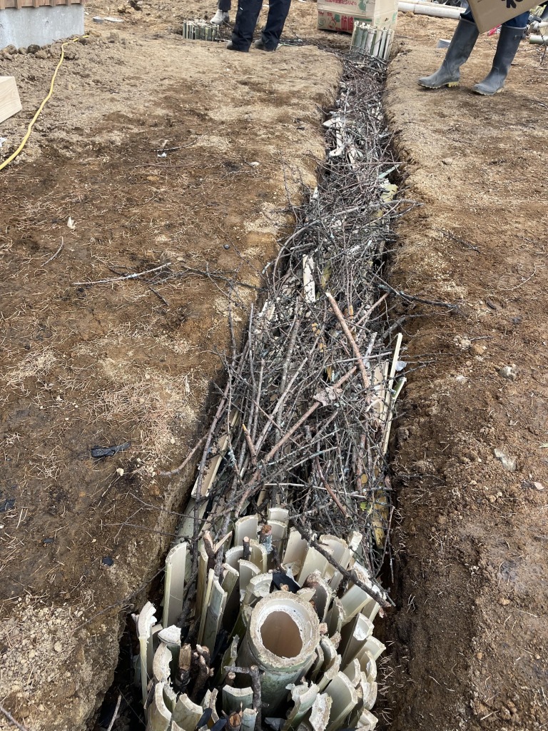 それを防ぐために、建てたお家の周りに穴を掘り、竹炭と有機物を使い、水や空気の通り道をつくる外構工事をおこなっています(^o^)/