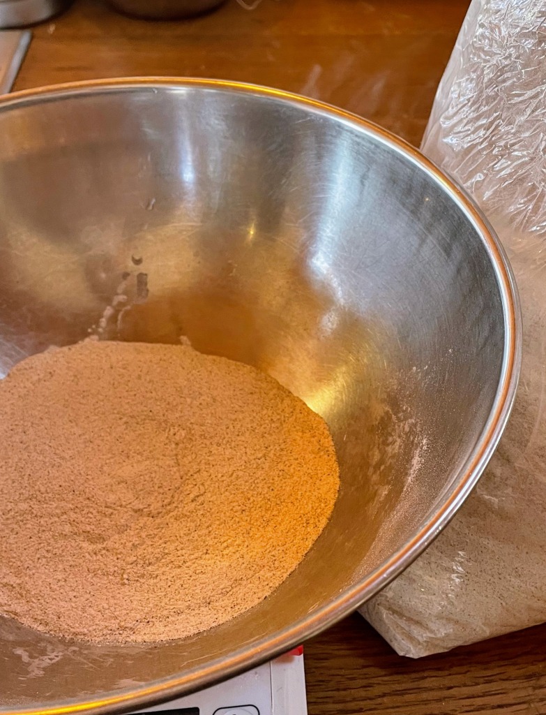 今日は我らがけろちゃんご指導のもと、蕎麦粉と米油と砂糖、塩少々のみの材料で作ってみました。昨年、循環畑でとれた貴重な蕎麦粉を正確にはかります。