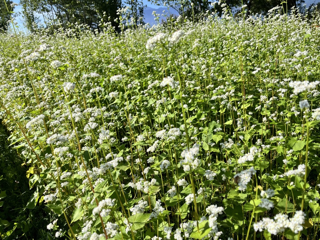 7月に蕎麦の種を蒔いて8月末になる頃に、白く美しい蕎麦の花が咲き誇ります。