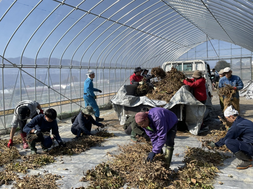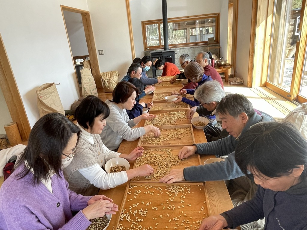 こうして育ててきた大豆を、味噌作りに使うを手作業で選ぶ日。