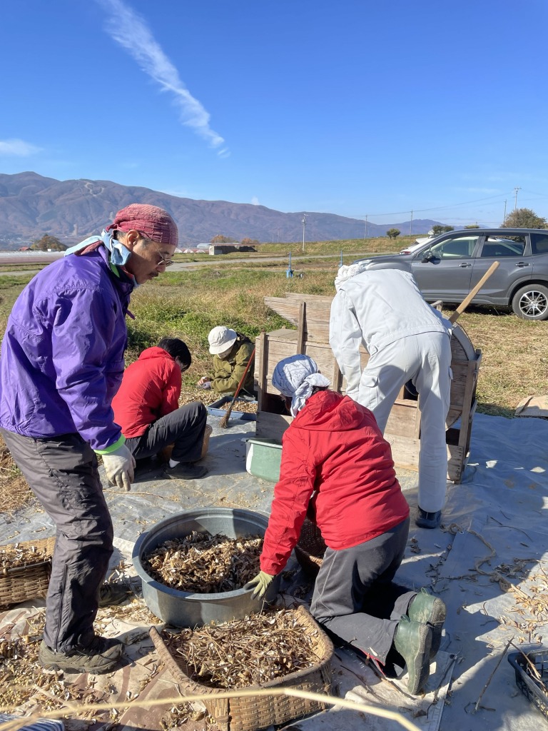 足踏み脱穀機が大活躍してくれます。