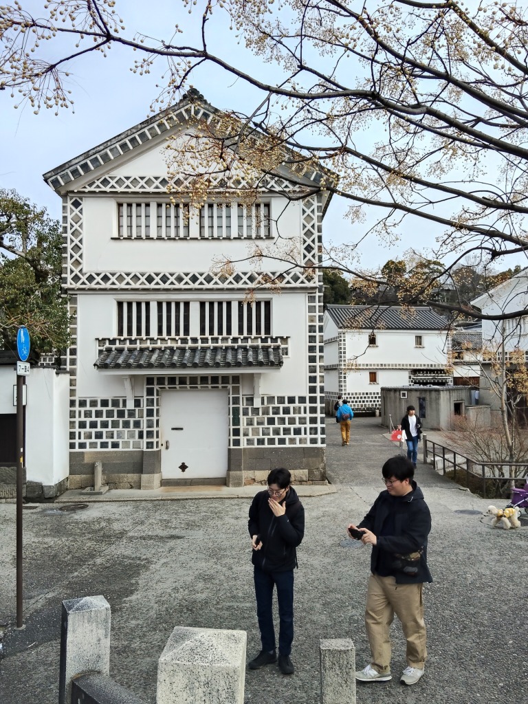 倉敷美観地区では、井上家住宅を見学してきました。 本物の300年前の家を見学できました。デフでも継手・仕口で木材をつなげる伝統的な工法を用いていますが、 古から培われてきた技術なんだと実感し興奮しました。 井上家住宅でも建具の納まりが工夫されており、分厚い扉を重ねて畳んで省スペースに収めるようになっていました。 工務店さんで見た建具の納まりと比較するように見ることができて楽しかったです。 〇旅行中の様子