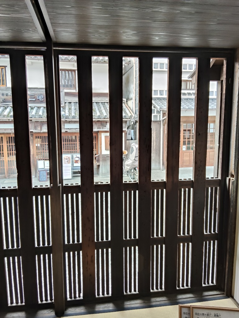 こちらは建具の納まりがどこも美しく、隙間ができないように障子の框が2重になっていたり、 戸袋のフタが障子についていたりと素朴な見た目でも細かな工夫が凝らされており、 工事部一同なめるように見学してきました。 〇倉敷美観地区 井上家住宅
