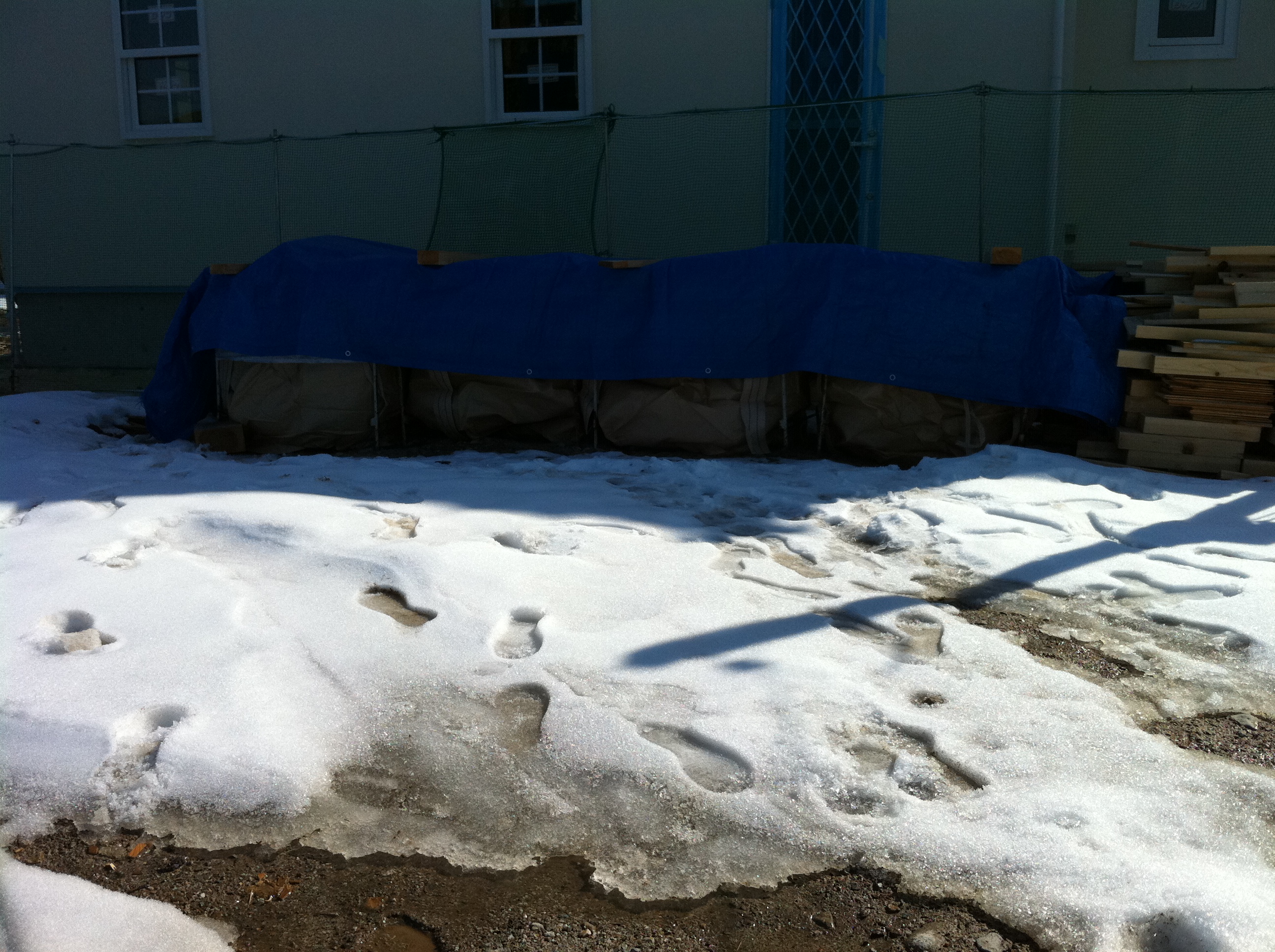 ゴミ捨て場は雨や雪が入らないようにシートで養生してくれてあります