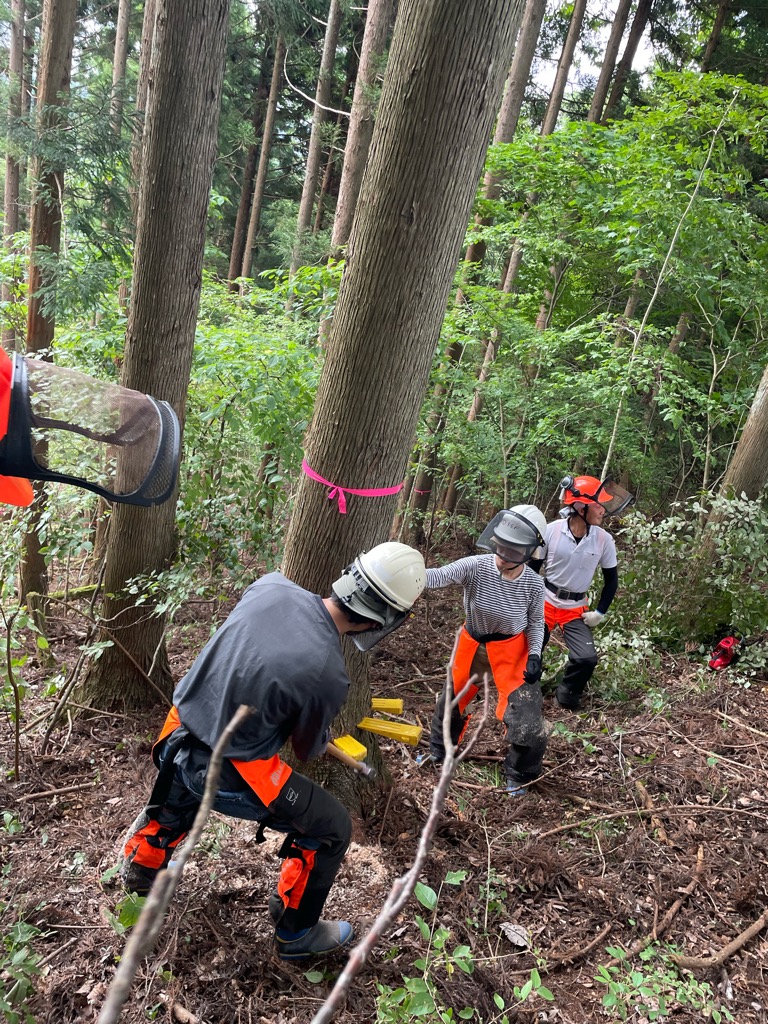 作業中では、いつもくりもくの伐採班の皆さんが丁寧に切り方を教えてくれます。