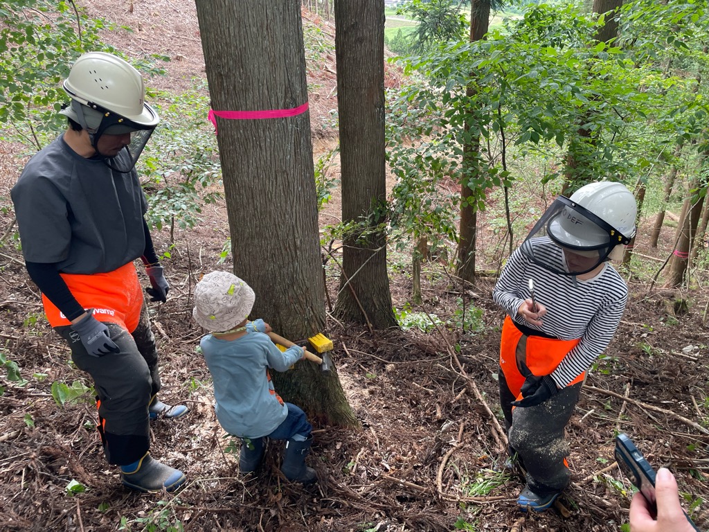 せっかくなので、力が有り余っているWさまには、別の木でクサビ打ち体験もしてもらいました。 さすが皆さん山も慣れていて疲れ知らずって感じです。