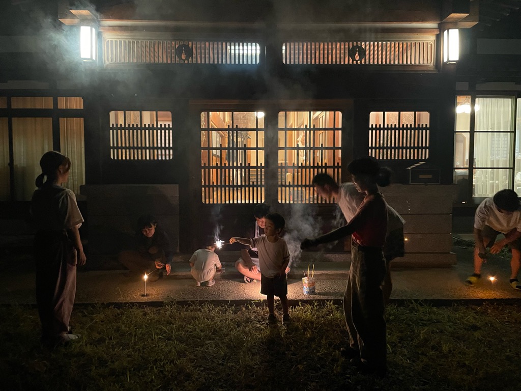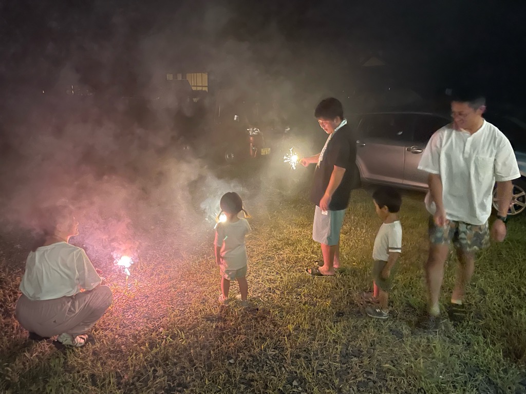 夏の終わりに、宮城の大きな実家で家族みんなで花火って感じです。