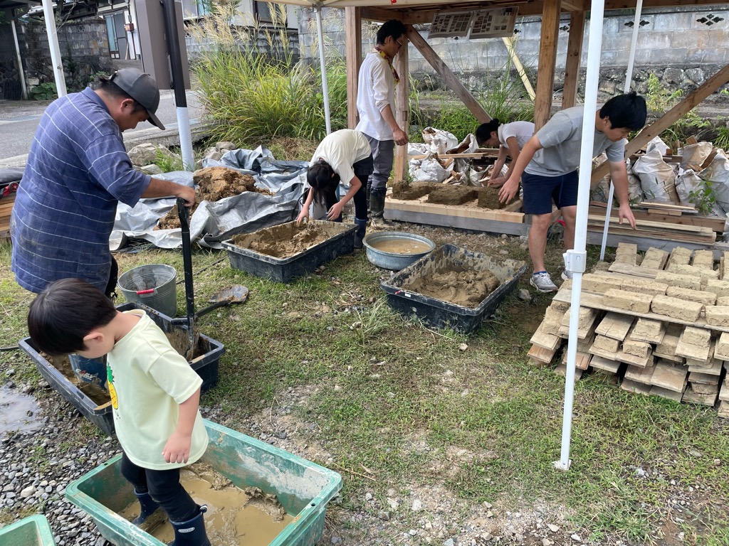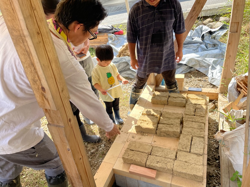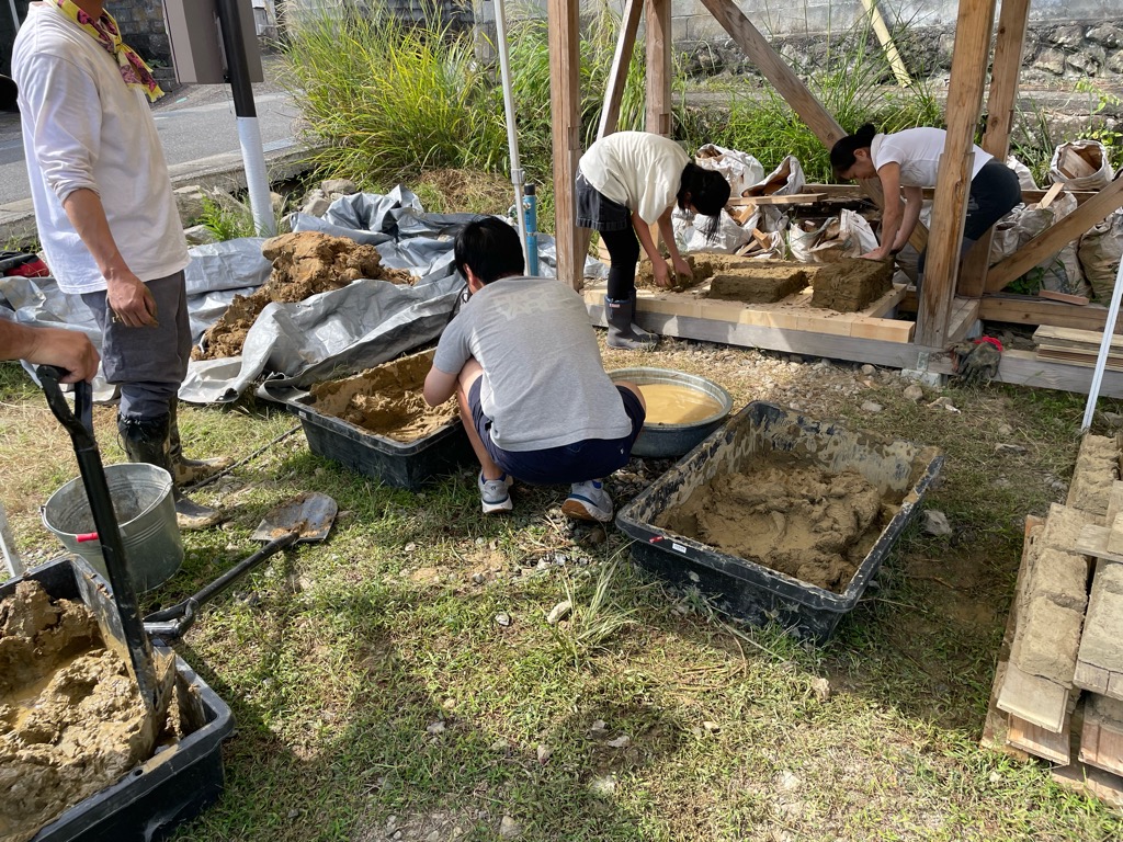 作業に参加していただいた皆さんありがとうございました! 次回は細かく砕いたワラや砂を混ぜた土を表面に塗って更にキレイにして、最後に漆喰を塗って仕上げますよ。