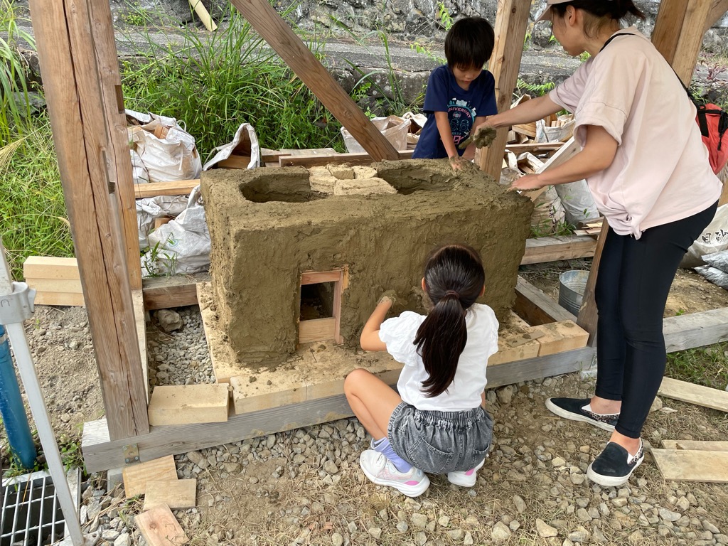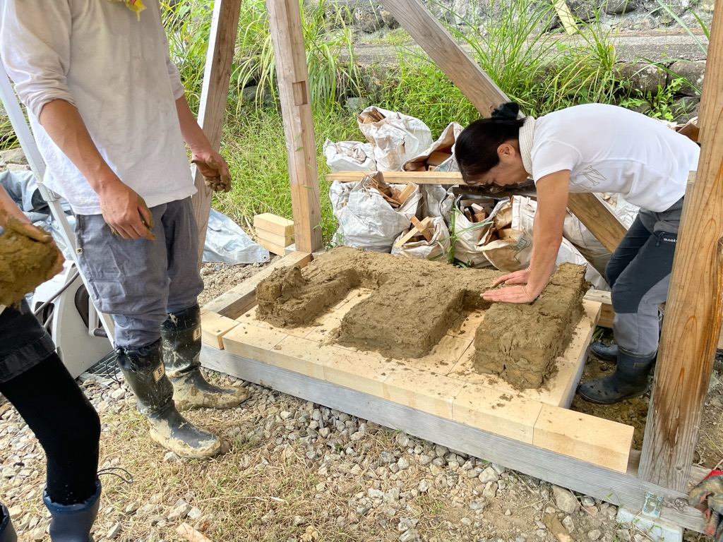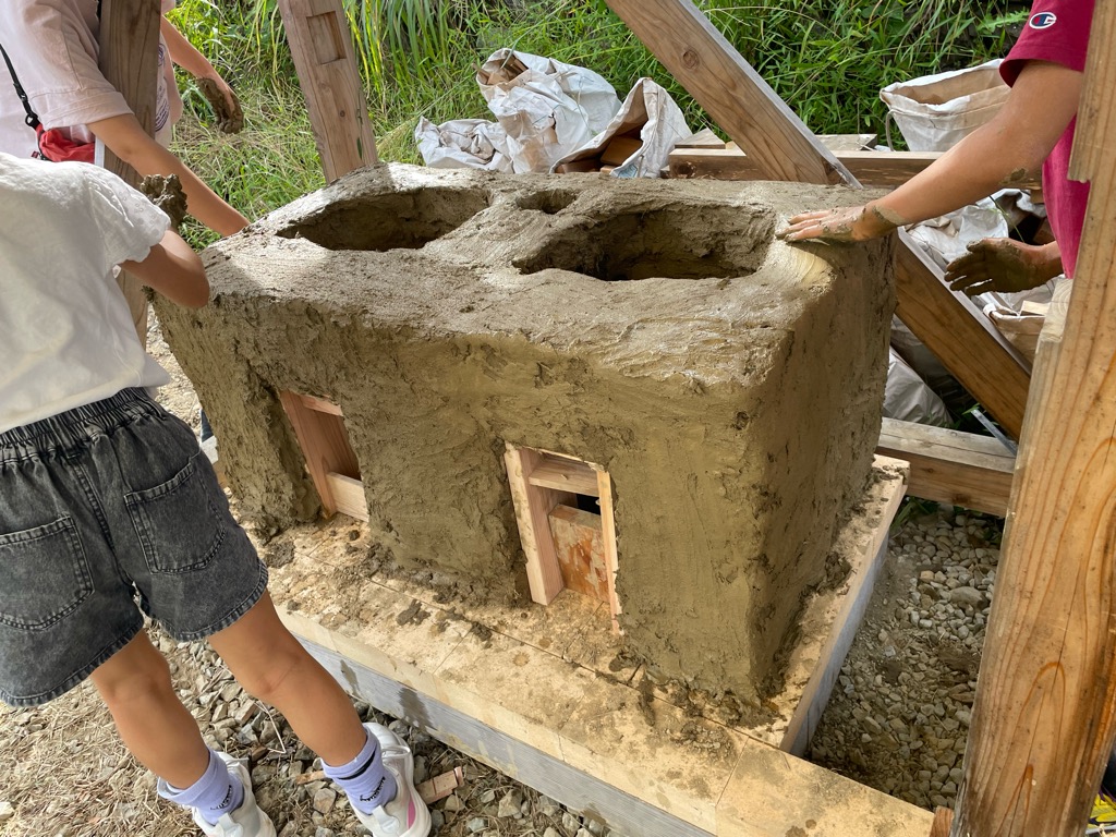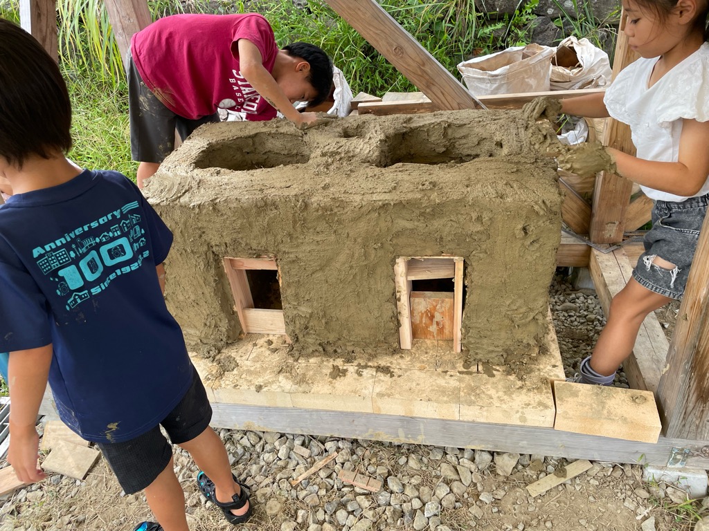 お兄ちゃんや弟さんも泥だらけになりながら丁寧に仕上げてくれました。 そして、徐々にかまどの形が整っていきます。