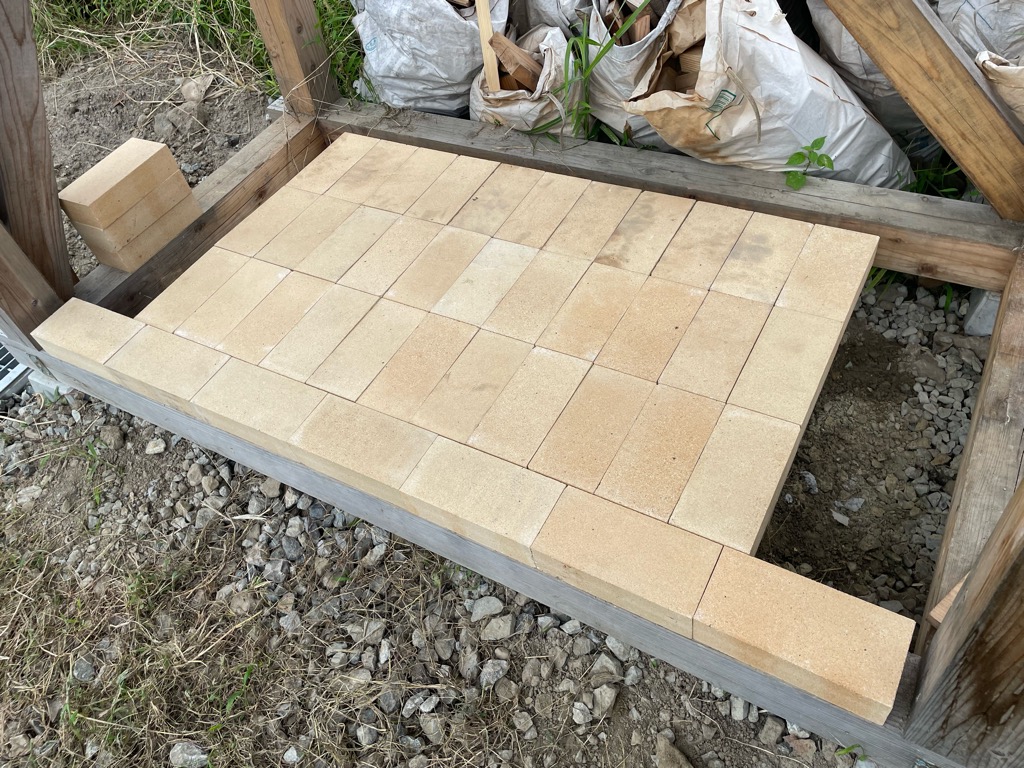 基礎の上には黄色っぽい色をした耐火レンガを並べます。
