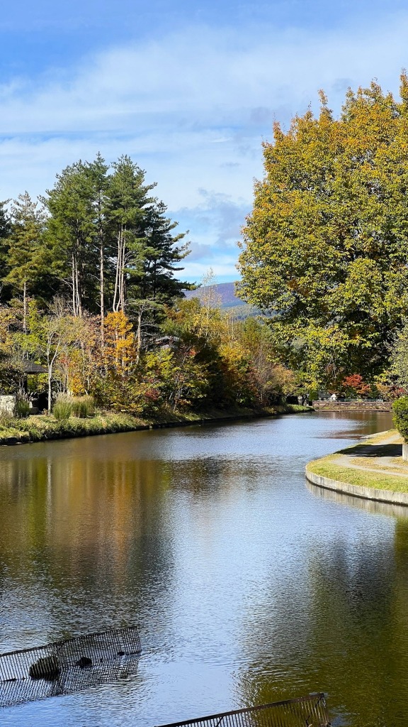 11月に入り、御代田町周辺は紅葉の最盛期を迎えています。自宅から歩いて約10分のところにある御影用水に来てみました。日中はポカポカ陽気で、のんびりお散歩を楽しむ方が沢山います。キラキラと流れるさざ波を眺めながら、凝り固まった足腰をグルグルと回し、上半身を大胆に動かして深呼吸してみました。オヂサンのユルイ休日感が一層深まる、健やかなヒトトキでした。