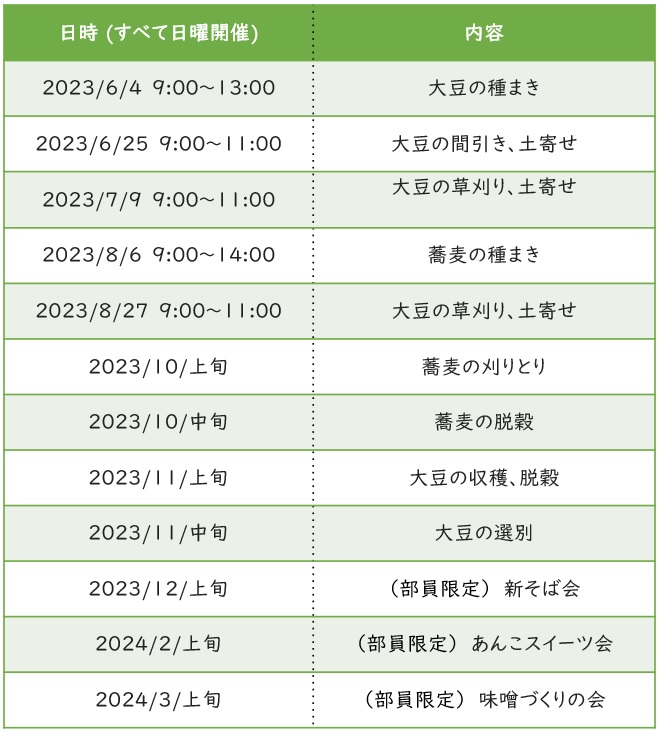 近日の作業日や持ち物、集合場所などの詳細をお送りします。