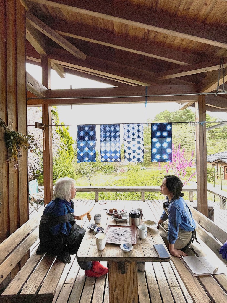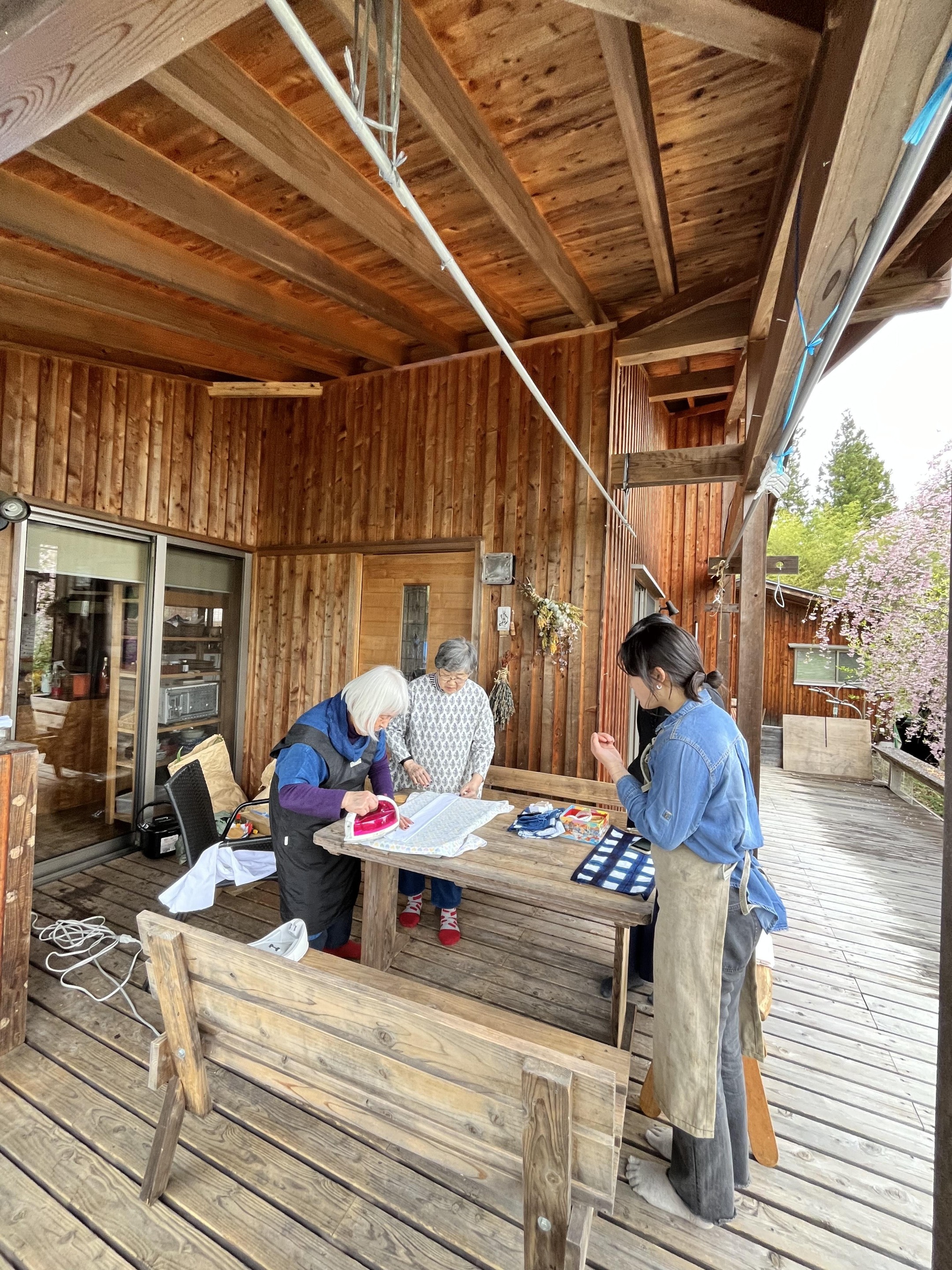 東京では染め場というところで染めておられた久江さん。作品によっては化学染料を使うこともありましたが、デフの家に暮らす様になってからは使用後の染料の行方を気にされるように。「土壌に負担をかけない技法を選びたいと思うようになったとのこと。そんなお話を伺えるのもこのワークショップの嬉しいところです。