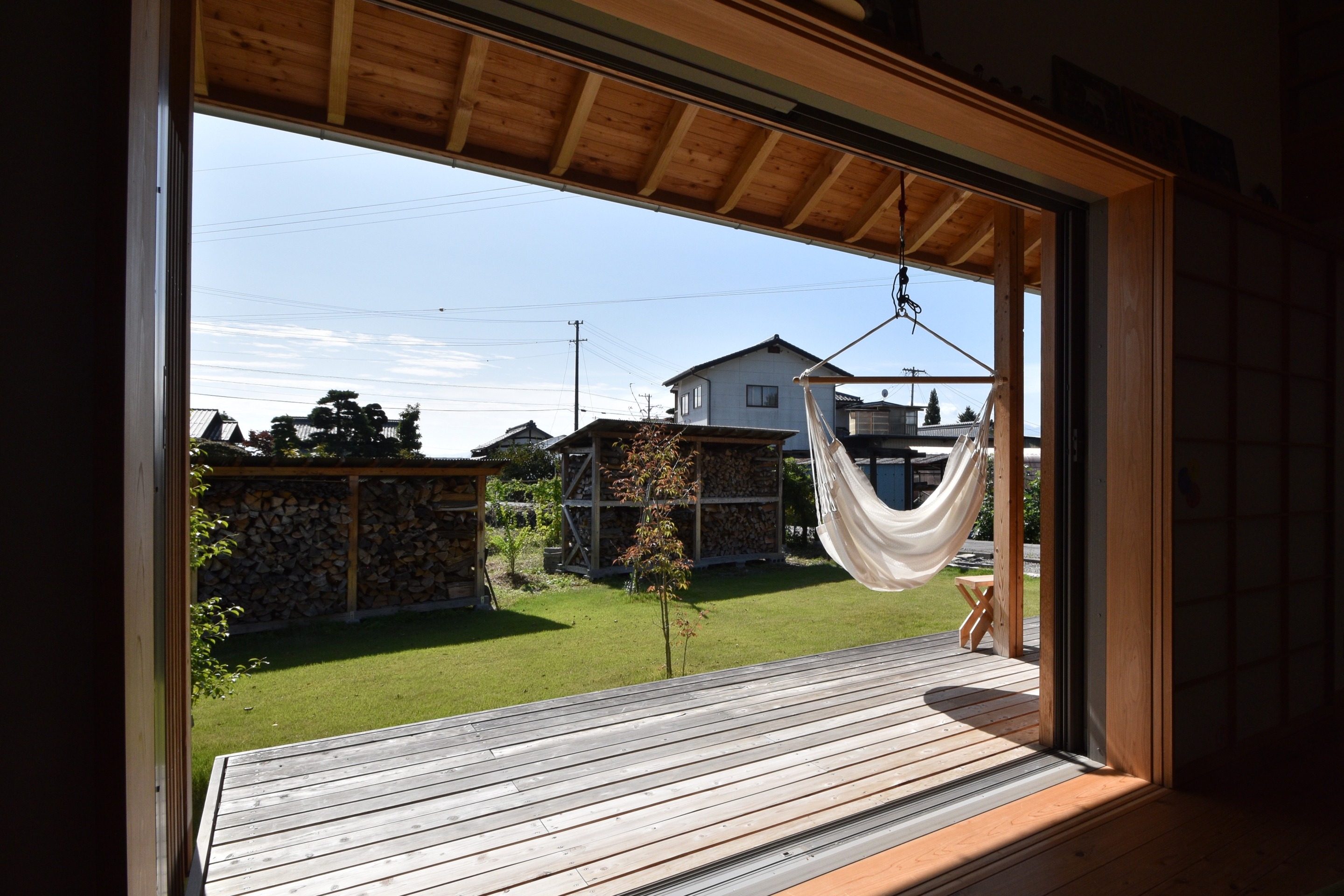 気ままに過ごせるおおらかな家、木がよく見える家、木でできた家。