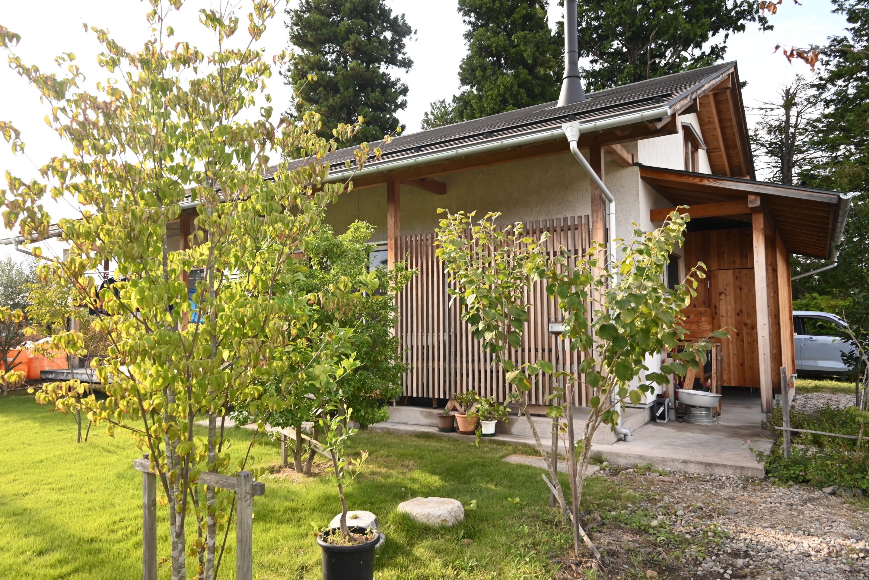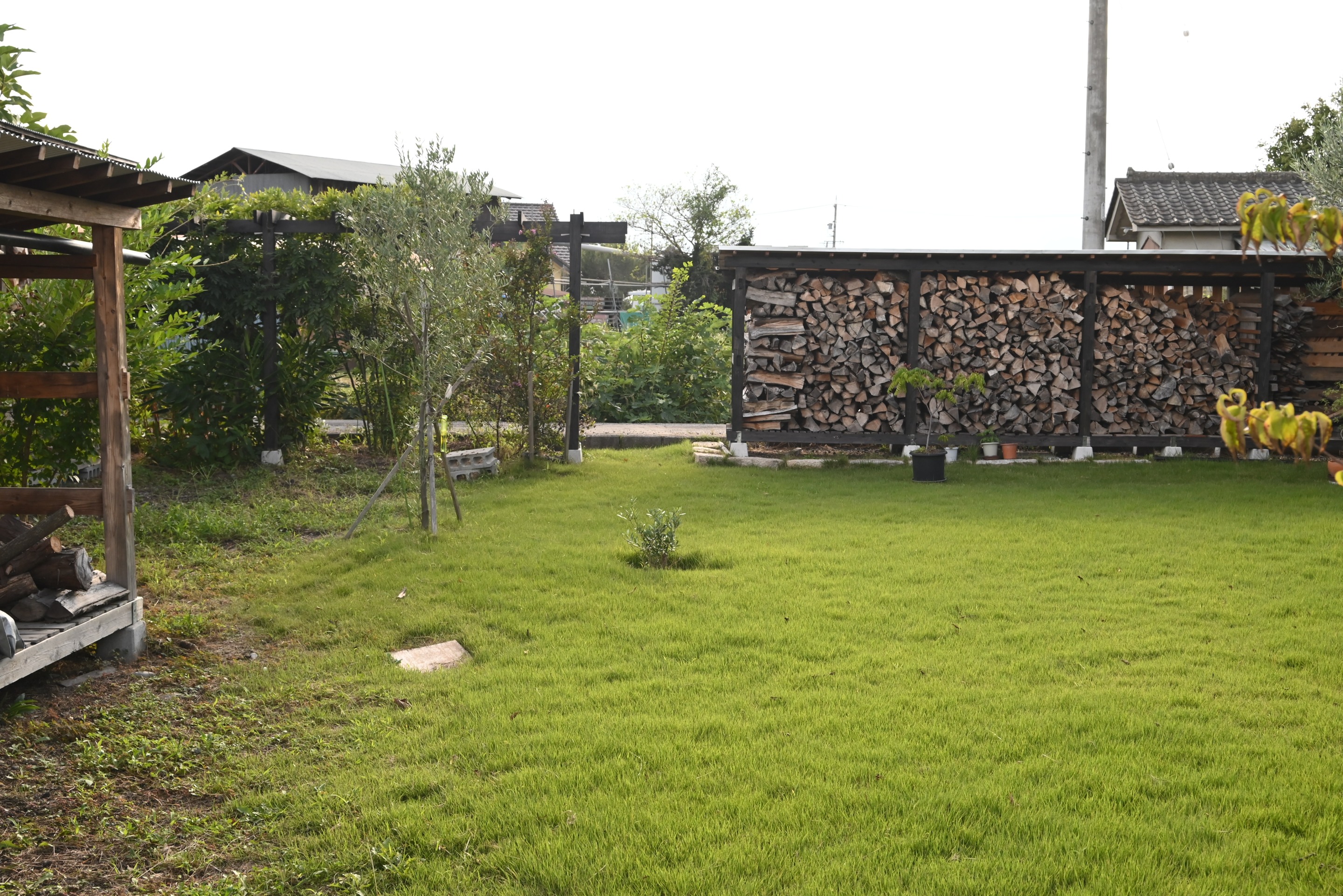 家の前の庭には芝を植え、ハーブや木々も少しづつ植えてお庭作りも楽しんでいるオーナー様。