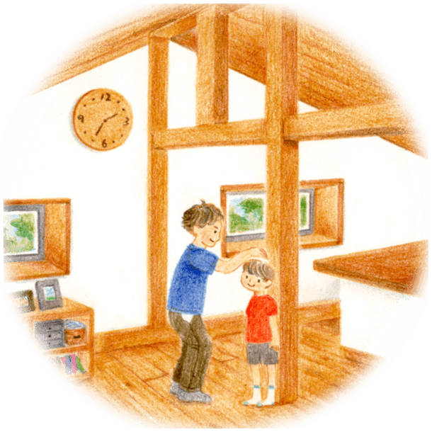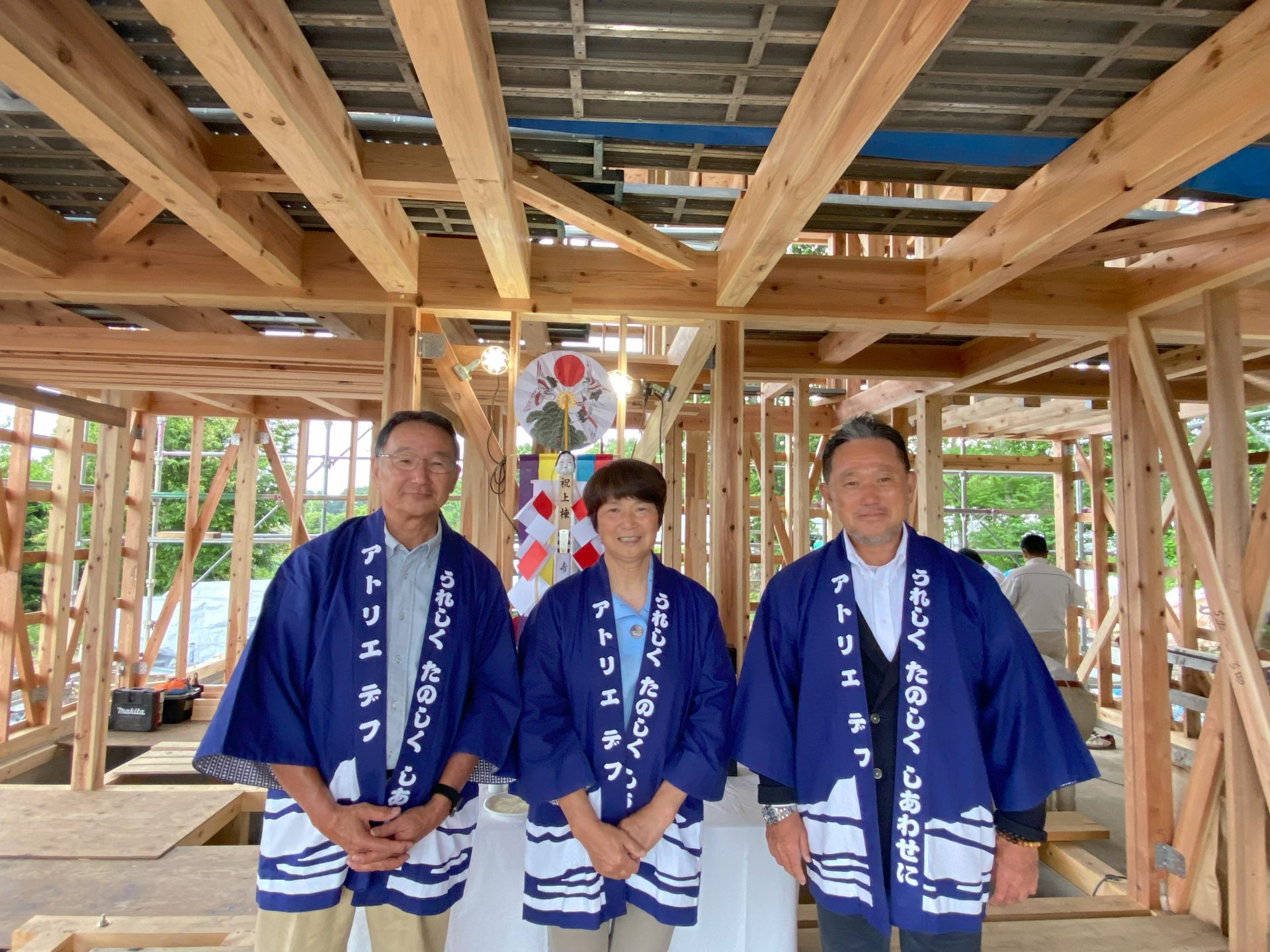 宮城県栗駒まで大黒柱を伐りに行き、木樵と一緒にそれを伐倒しそれを長野に運び、今度はその材を棟梁が「技と心」を込め築き上げていく姿をみて家づくりの楽しさを感じておられました。