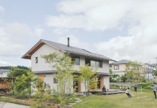- 床/杉、壁/土壁の上漆喰仕上げ、天井/1階:漆喰仕上げ、2階:桧羽目板張り、玄関土間/大磯洗い出し・藤岡瓦・白州土タタキ・ナゴヤモザイク、床塗装/自然塗料(みつろう)、建具/木製製作建具(工房玄関ドア:施主支給)